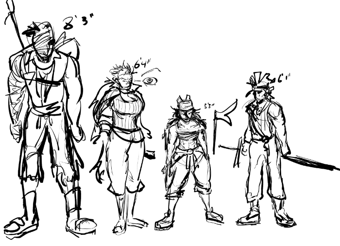 And here is the final lineup for the primary cast of characters for my comic that I’m working on as a personal project. Followed by a work in progress picture of the main character, Vindima.